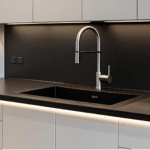 Ananya india _Homes Stainless Steel Ananya_Indian_ Single Bowl Kitchen Sink 30x18x9 inch Black Waterfall Workstation with Pull-Down Faucet